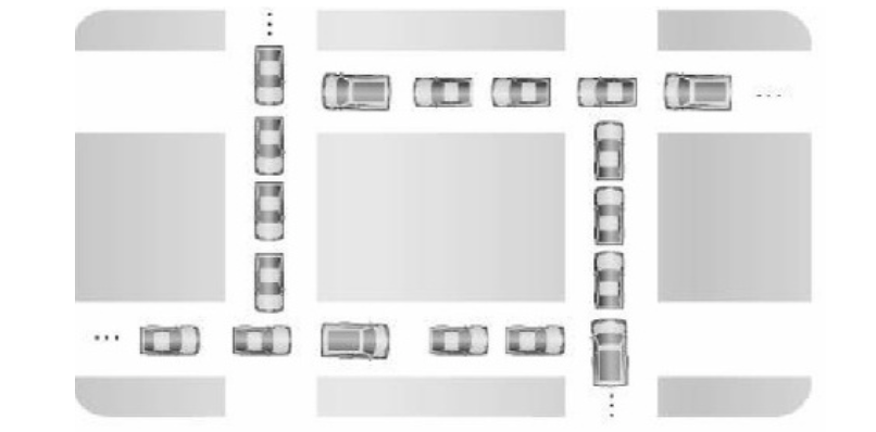 - ex) 4개의 교차로의 좌회전 신호 대기 중인 차들