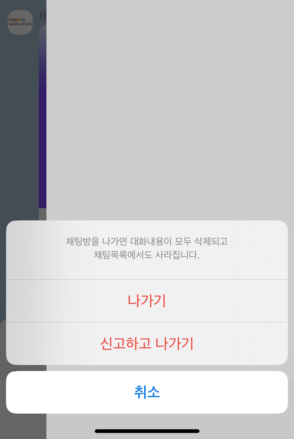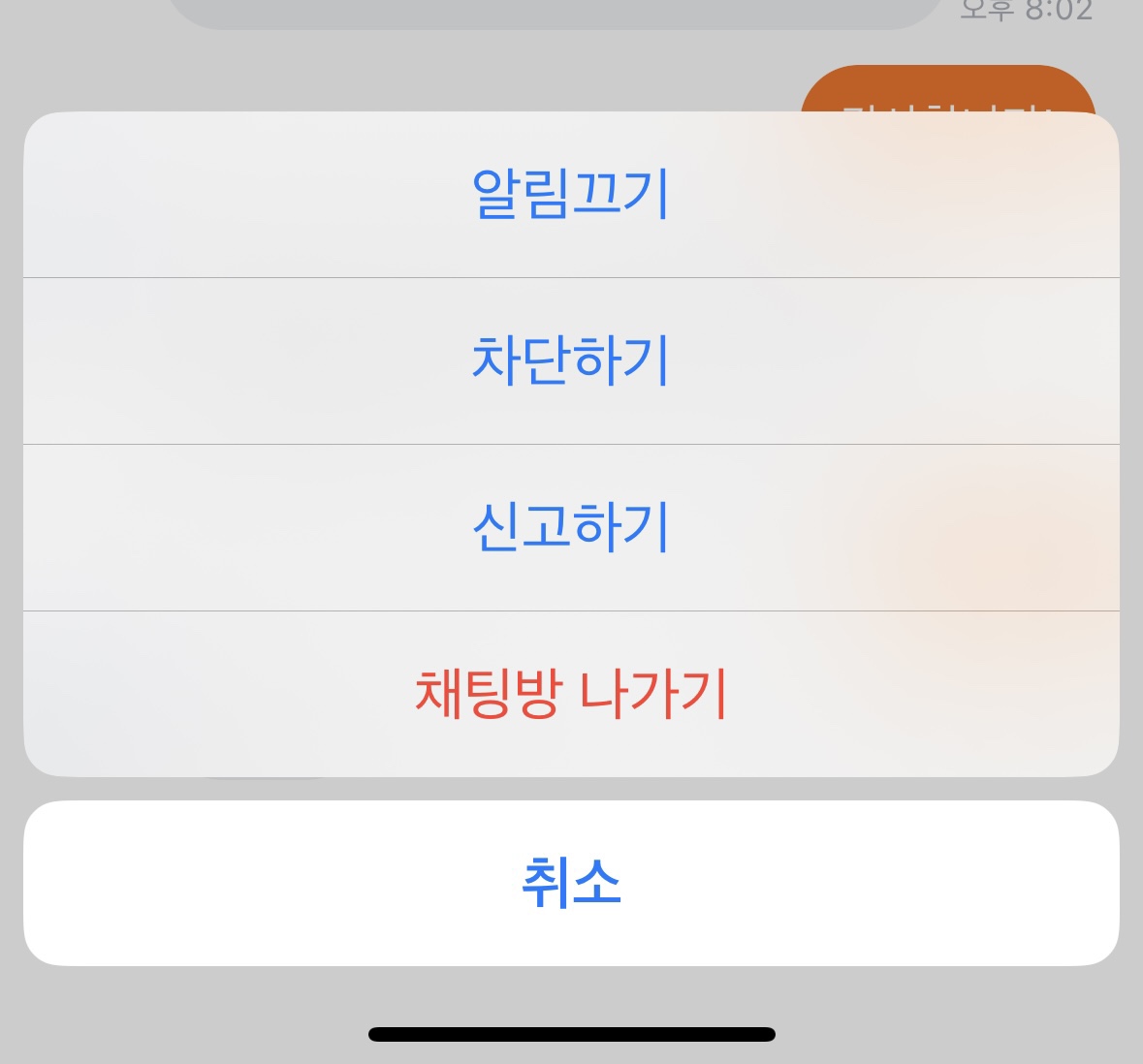 이렇게 채팅방 나가기를 구현해서 ActionSheet를 알게 되었다~~