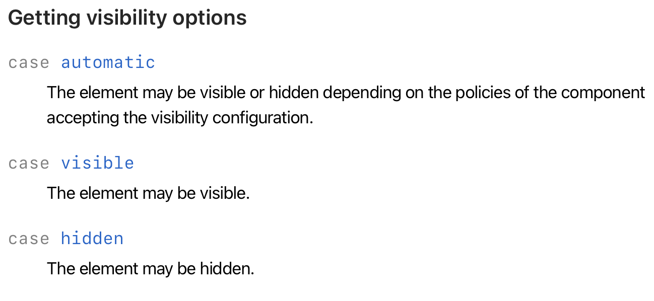 Visibility의 case는 automatic, visible , hidden으로 돼있다.